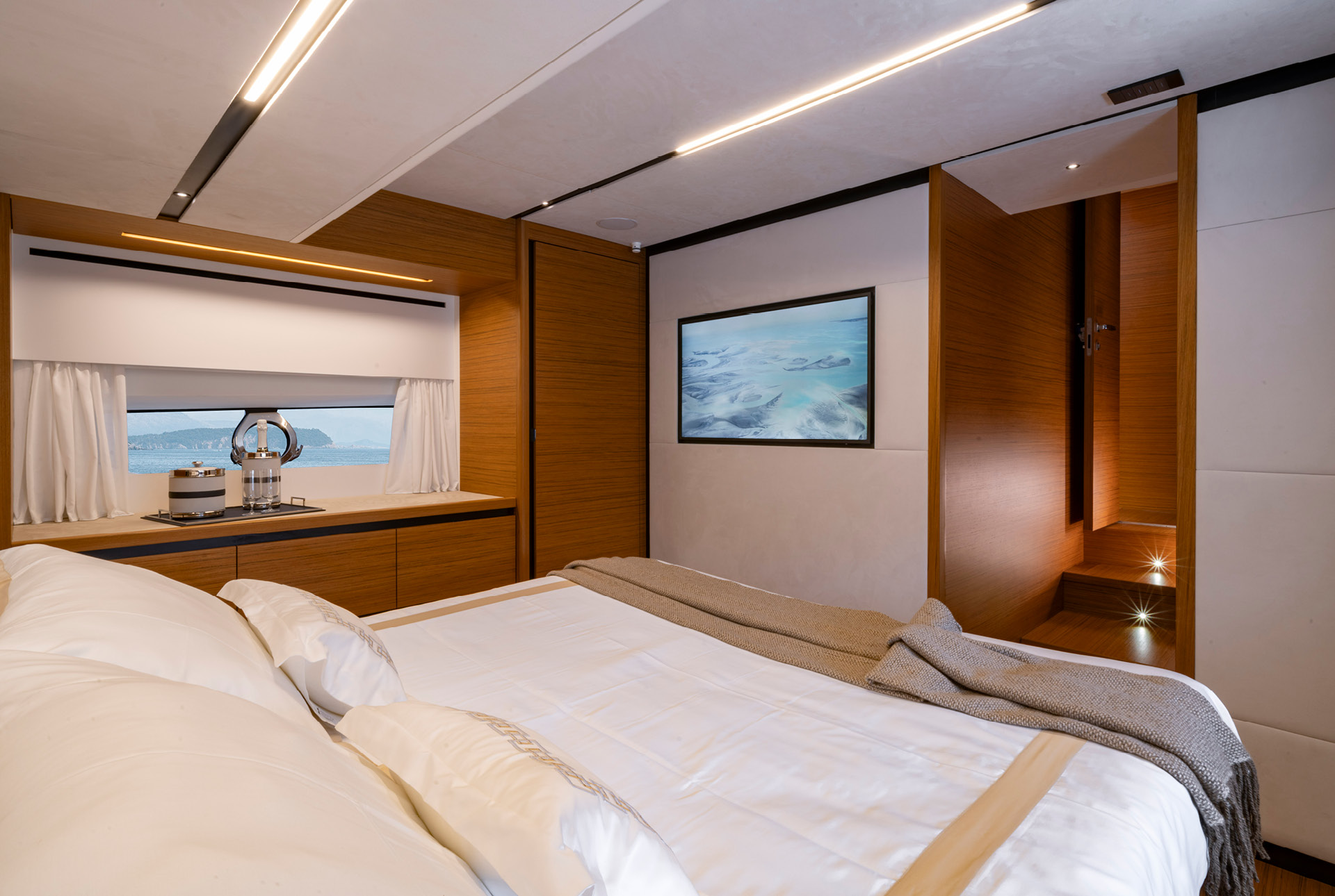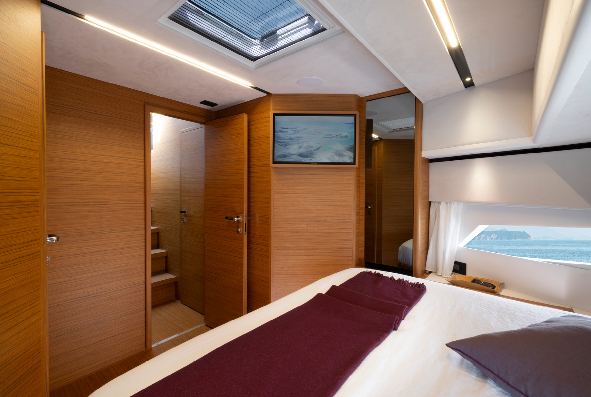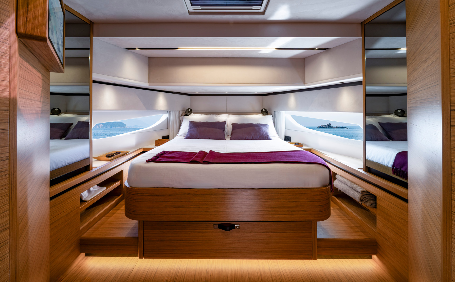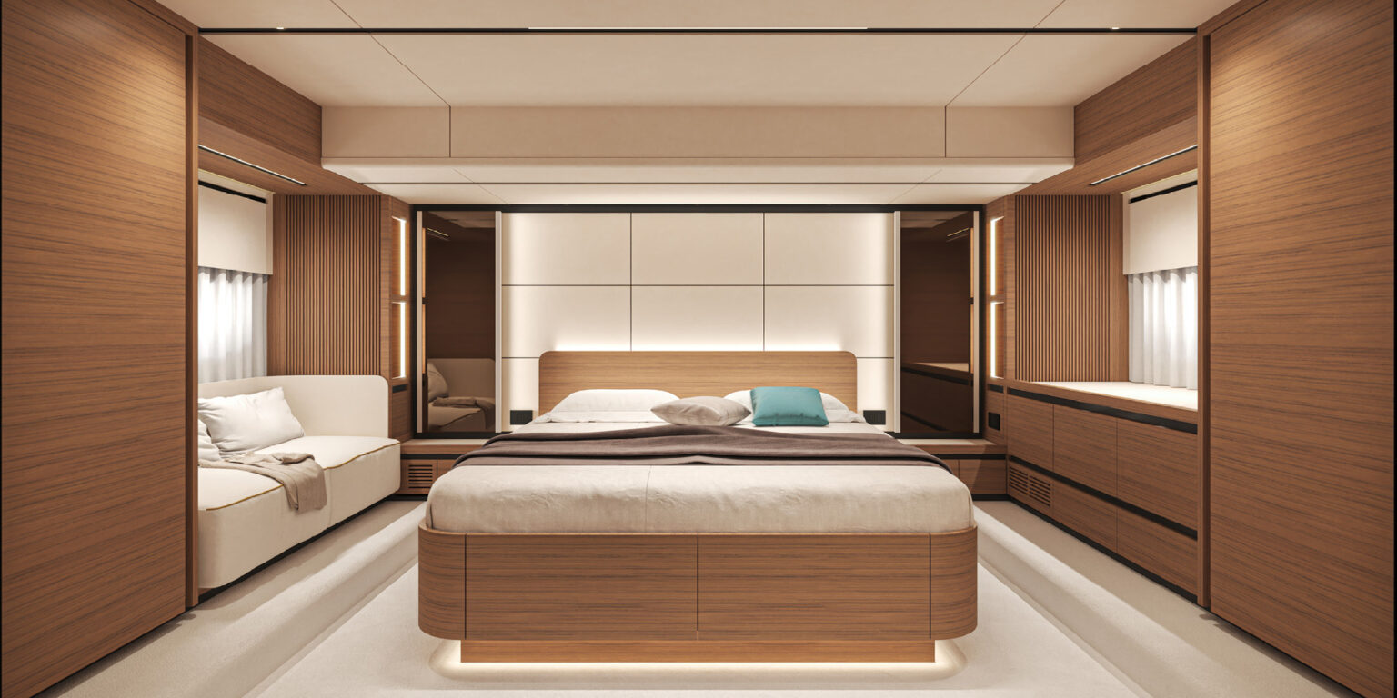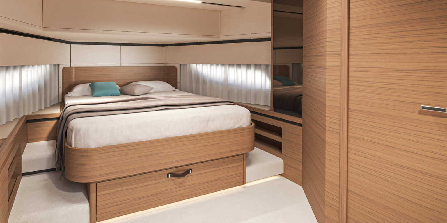 dos camarotes de propietario de todo el ancho con opción de un tercer camarote para invitados en lugar de un salón.
