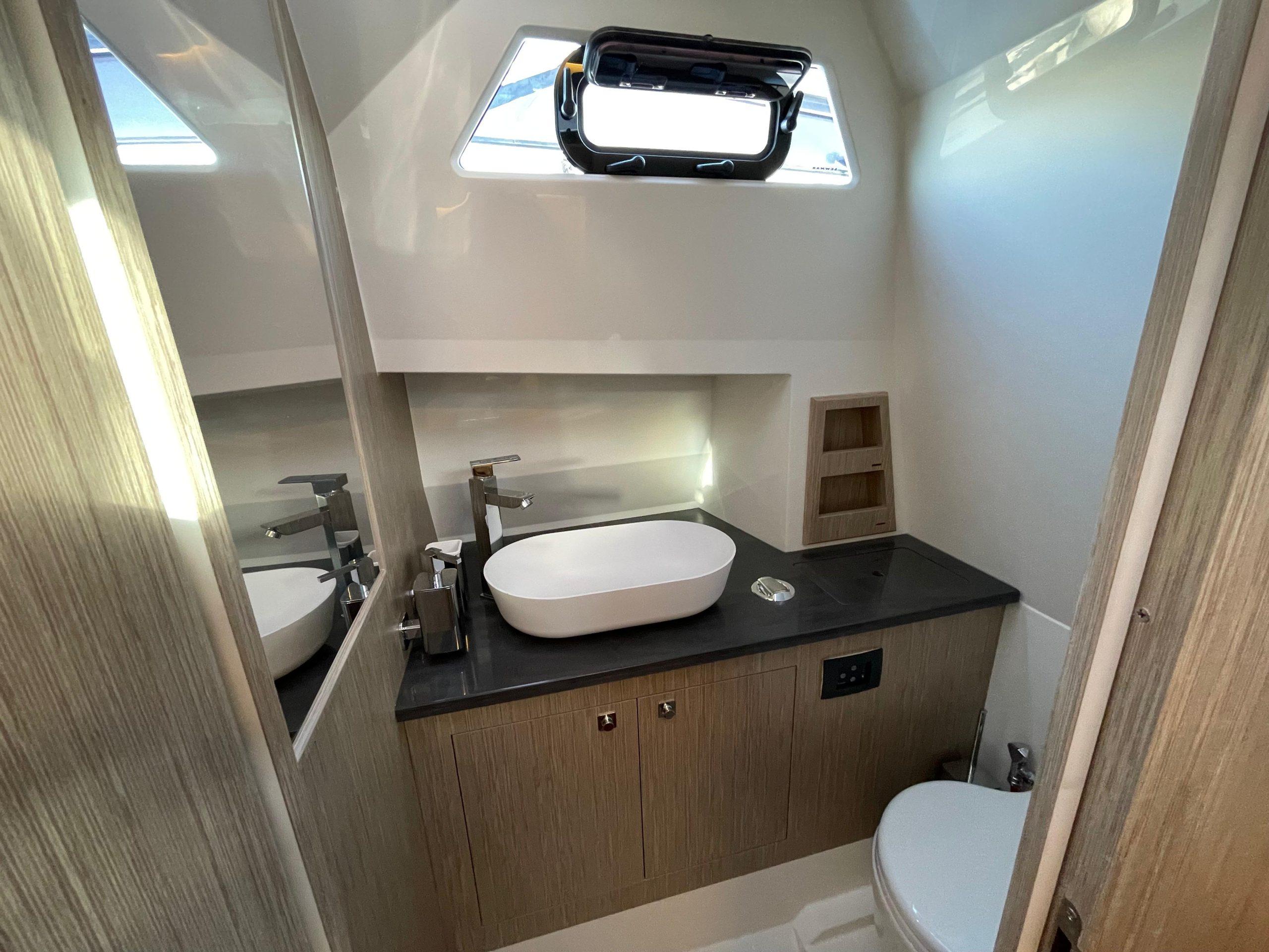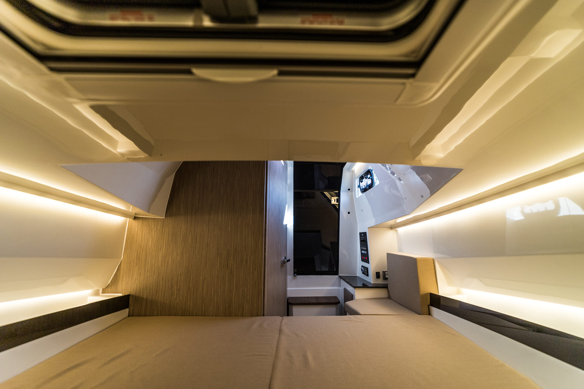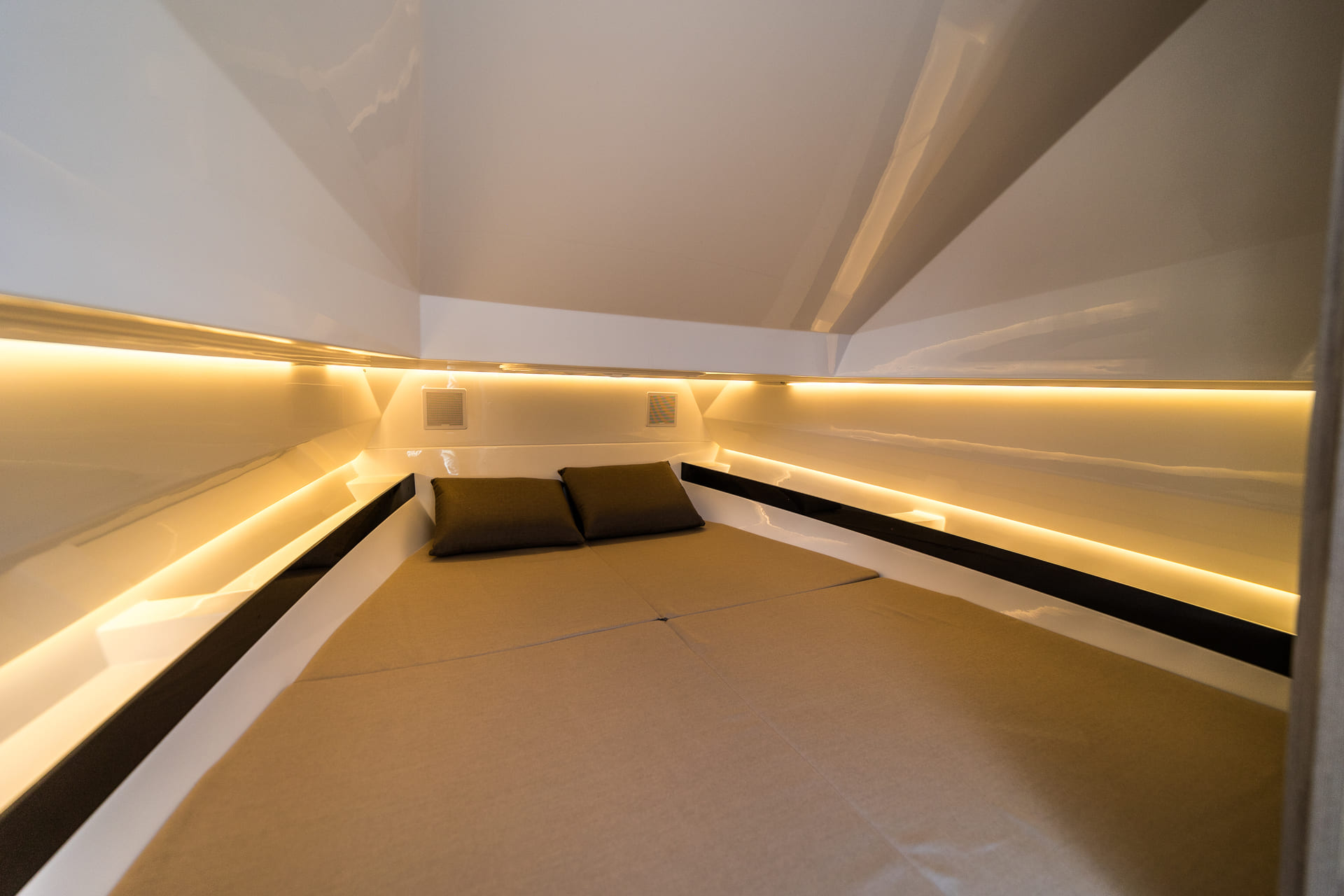 La cabina R10 representa un punto de inflexión en la historia del astillero. Con su debut, se introdujo por primera vez una cabina con aseo independiente, estableciendo nuevos estándares de confort, amplitud y diseño en su segmento.