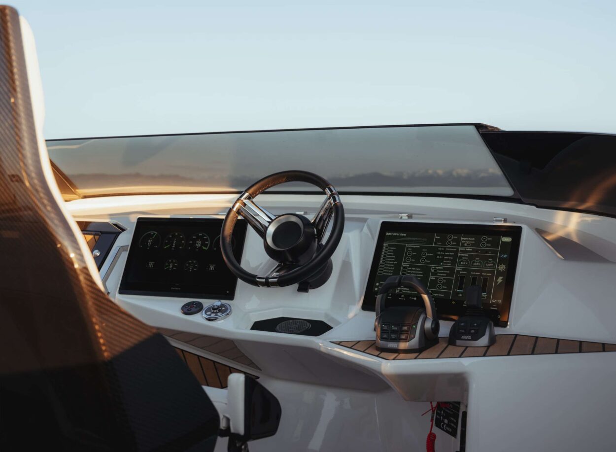Pesa solo 4,5 toneladas y consume solo 45 litros de combustible por hora a una velocidad de crucero promedio de 20 nudos, lo que aumenta la autonomía y el ahorro de combustible. Una cabina cómoda y lujosa con todo lo necesario para el uso diario.