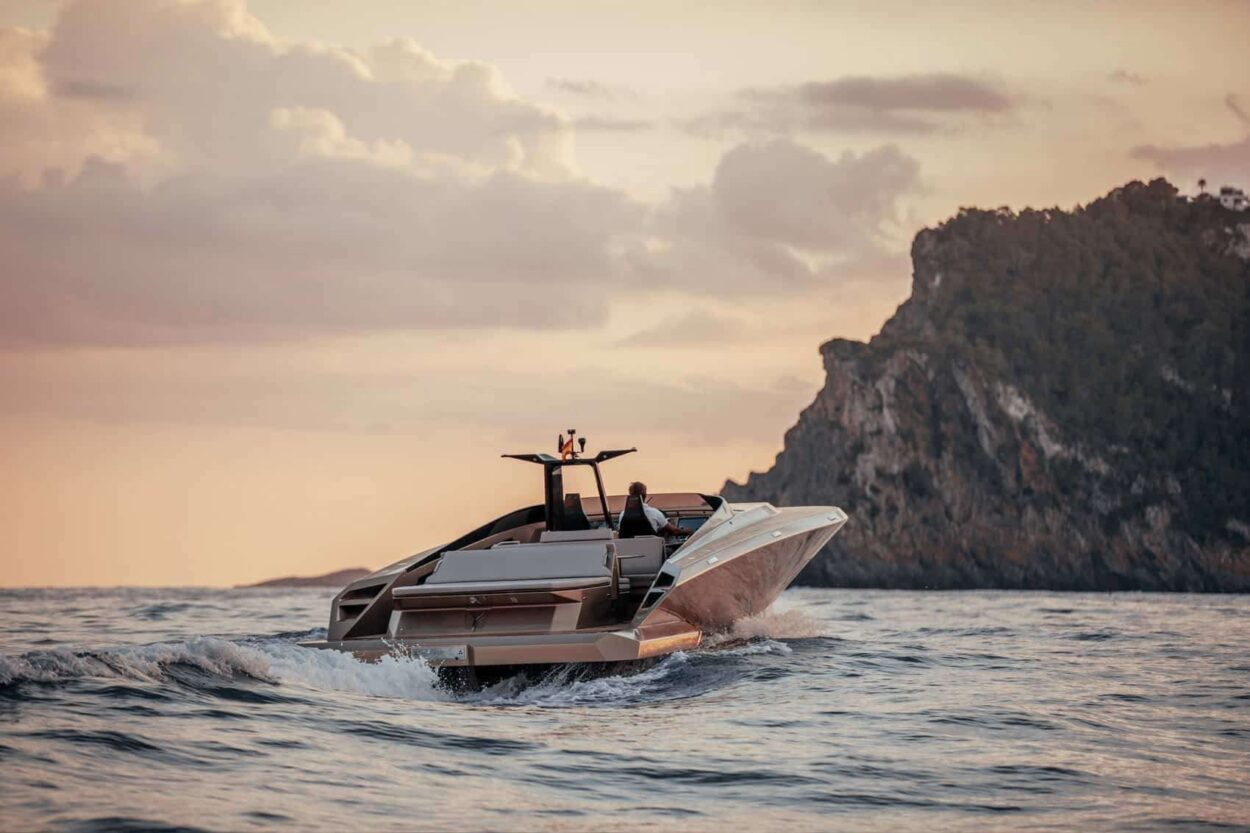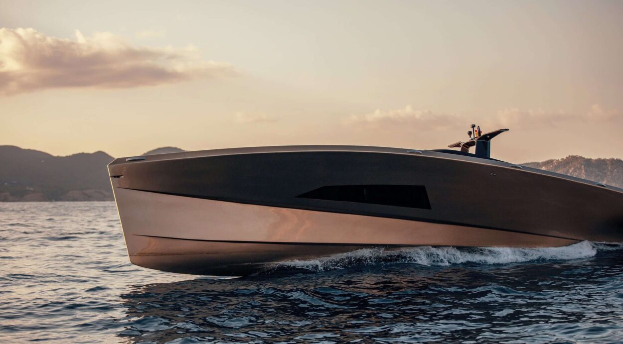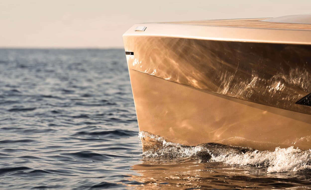 - El SAY 42 se realza con deflectores en forma de A que aumentan la comodidad al reducir la resistencia, las salpicaduras y el consumo de combustible, empujando el agua hacia atrás mientras impulsan el yate hacia adelante.