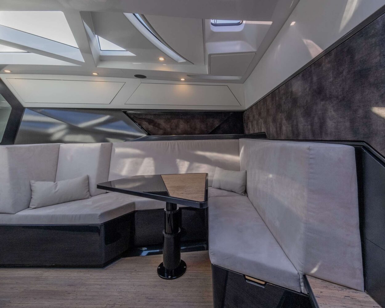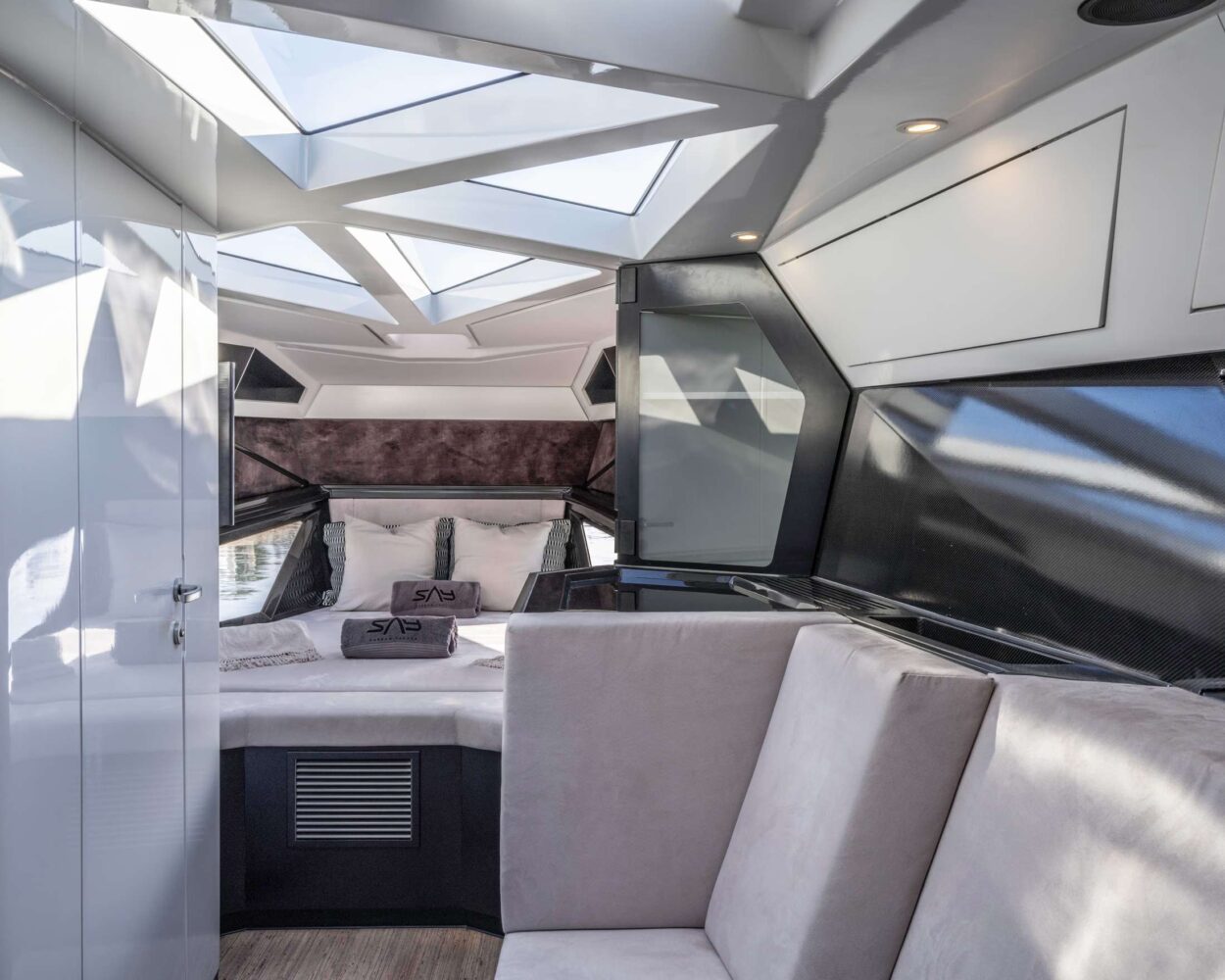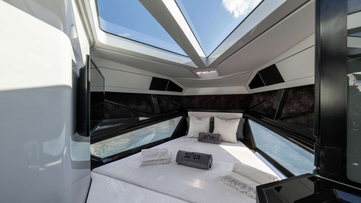 • El SAY 52 se realza con deflectores en forma de A que aumentan la comodidad al reducir la resistencia, las salpicaduras y el consumo de combustible, empujando el agua hacia atrás mientras impulsan el yate.