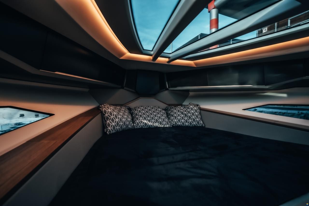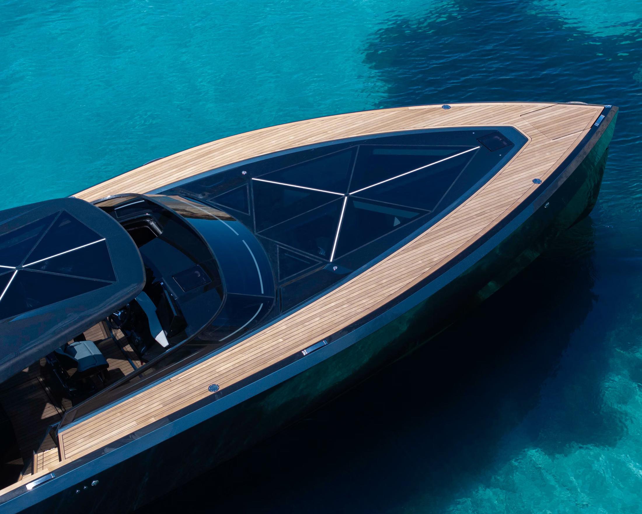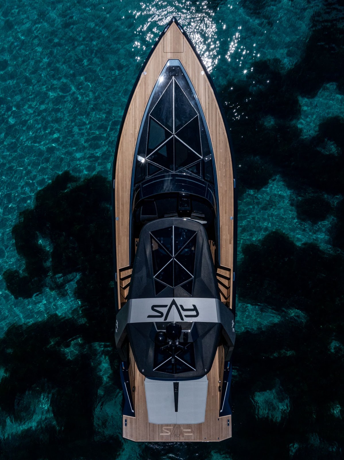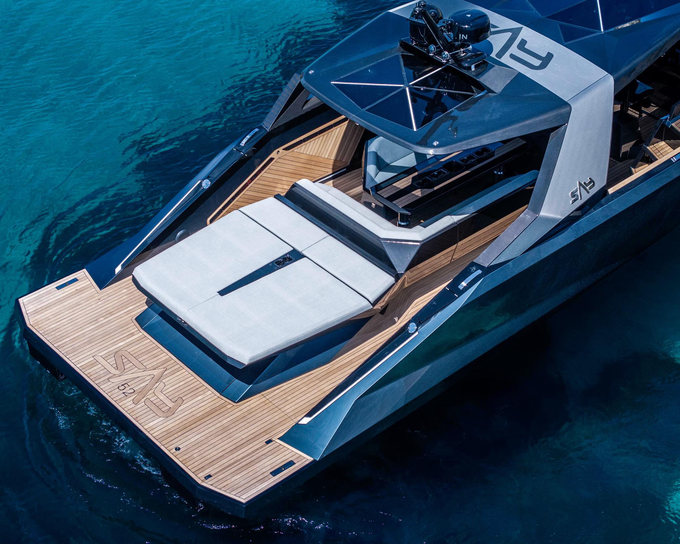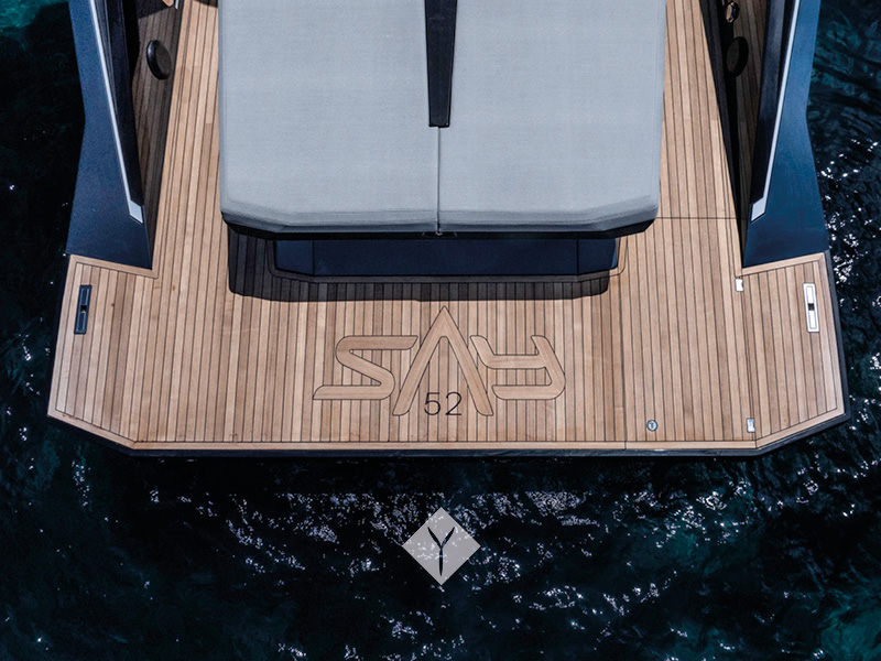 • El SAY 52 se realza con deflectores en forma de A que aumentan la comodidad al reducir la resistencia, las salpicaduras y el consumo de combustible, empujando el agua hacia atrás mientras impulsan el yate.