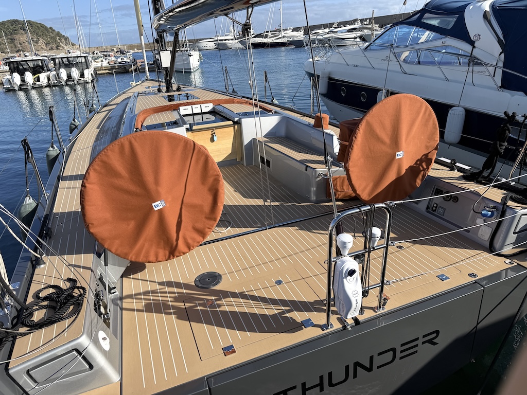 • Diseño exterior cuidado al máximo, con la puntura en el casco en gris oscuro y la cubierta en gris plata; combinación que, junto al mástil y botavara negro dan una imagen espectacular a la embarcación, siendo diferente a las otras unidades.